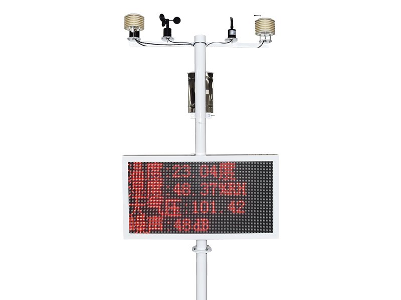 4.硬件組成:傳感器、立桿支架、設備箱、LED屏幕、采集器、云平臺、玻璃鋼百葉箱(內含干濕球溫度計) 日照計、圍欄