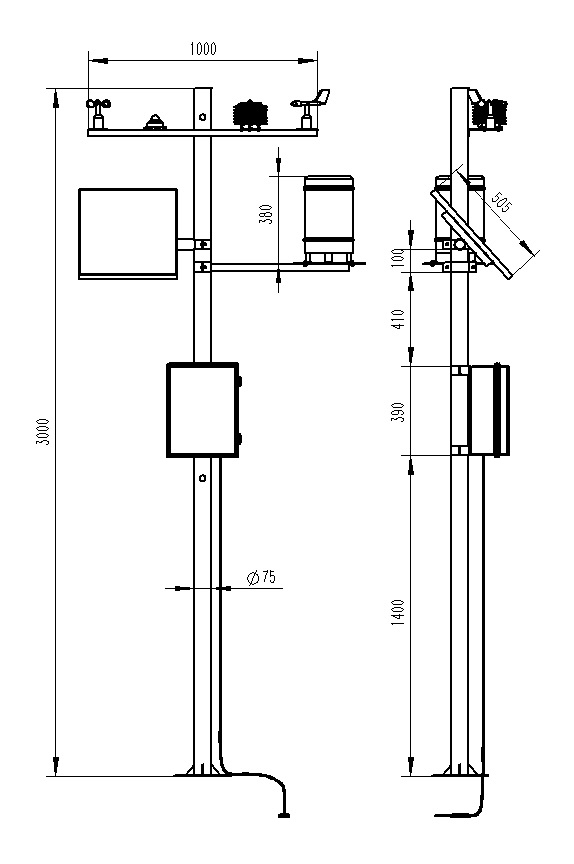 由氣象傳感器、氣象數據采集儀、電源系統、防護箱和氣象觀測支架、通訊模塊等部分構成。能夠用于對風速、風向、雨量、空氣溫度、空氣濕度、光照強度、土壤溫度、土壤濕度、蒸發量、大氣壓力等十幾個氣象要素進行全天候現場監測??梢酝ㄟ^專業配套的數據采集儀與軟件平臺進行連接,將數據傳輸到軟件平臺數據庫中,用于統計分析和處理,廣泛應用于工農業生產、旅游、科研、氣象等城市環境監測。
